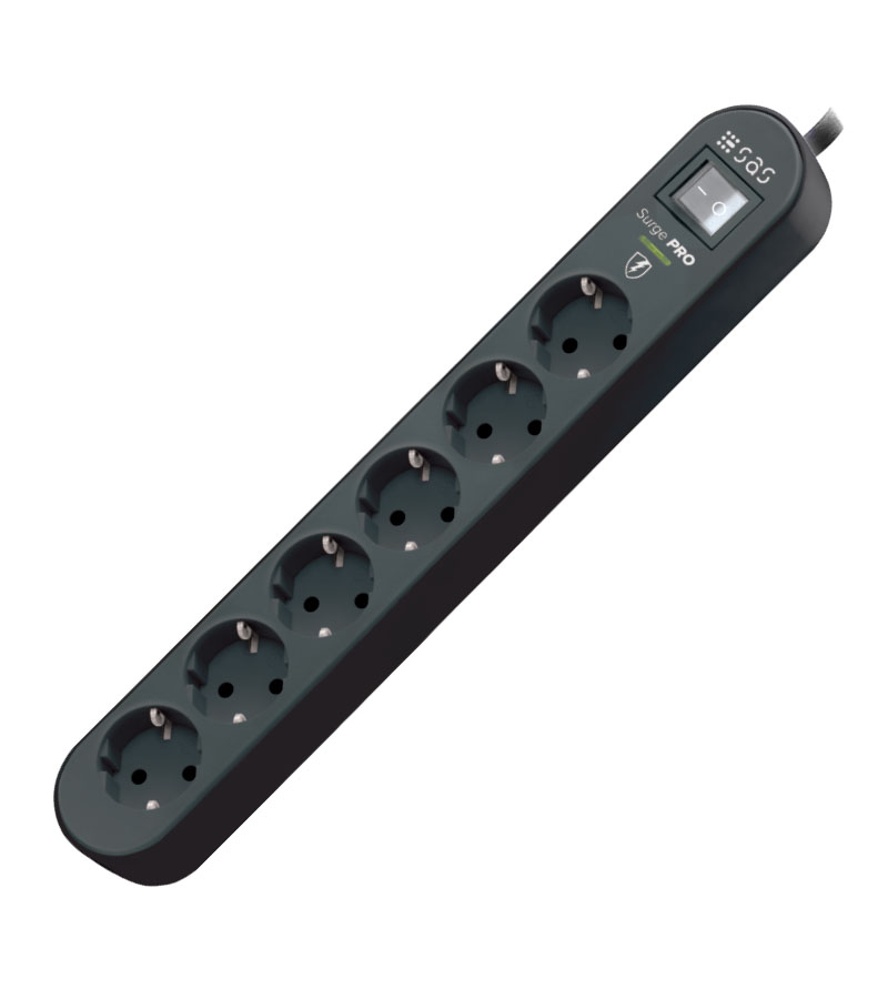 The 6way powerstrip SurgePRO in black color with built-in surge protection provides reliable protection for your electronic devices against power surges. Featuring an on/off switch and a 1.5-meter power cable.